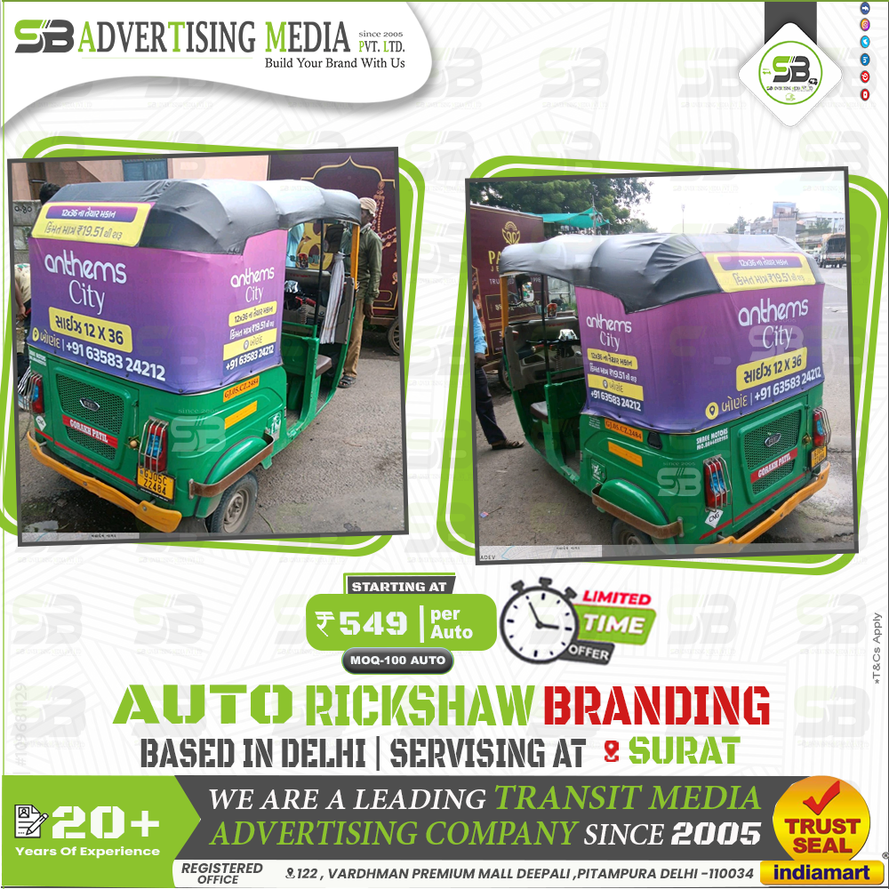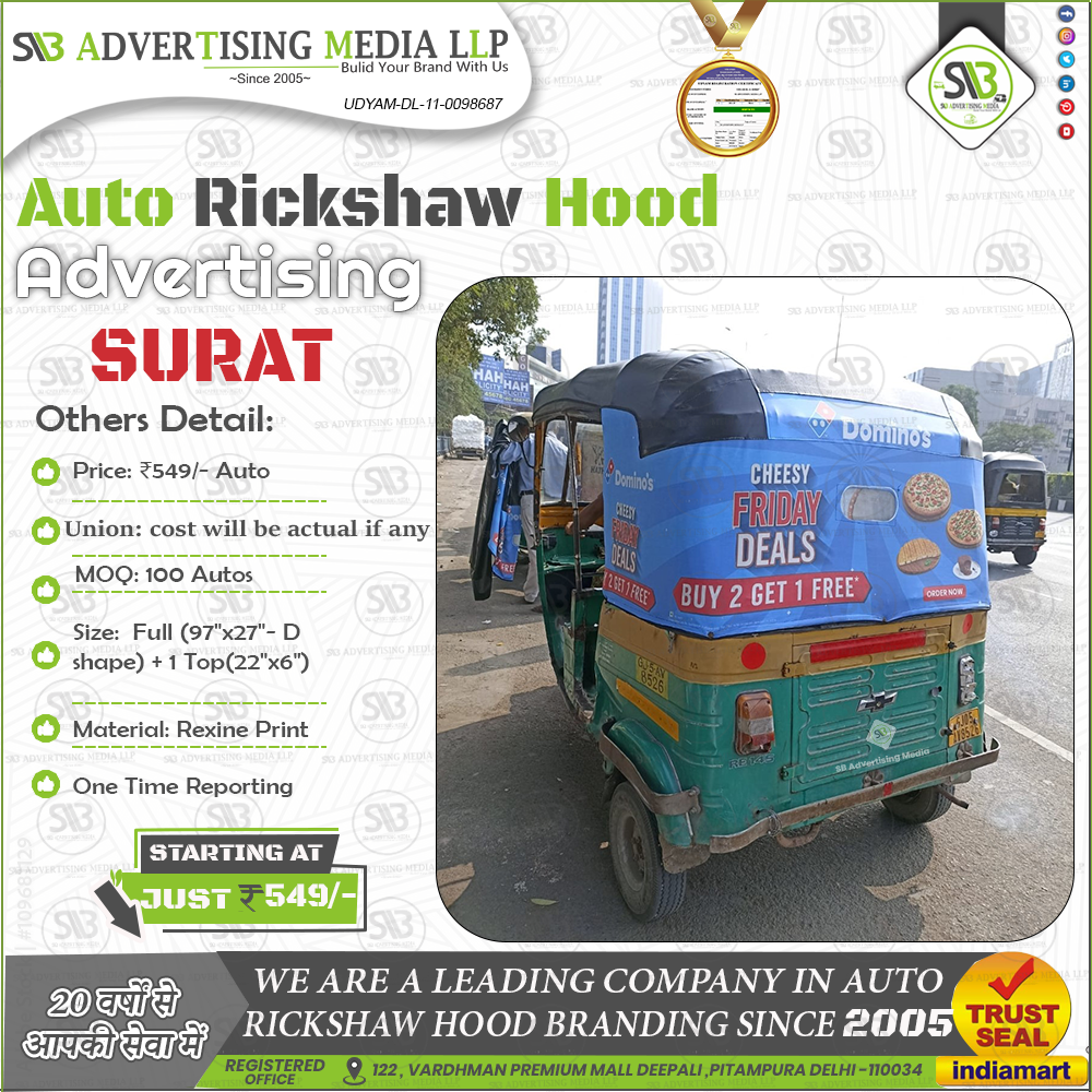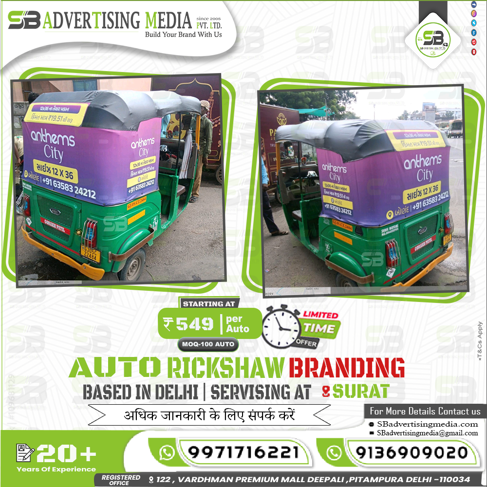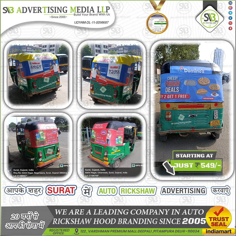 Maximize your reach in Surat with innovative auto rickshaw advertising. Connect with potential customers on the go. Call us for a quote!